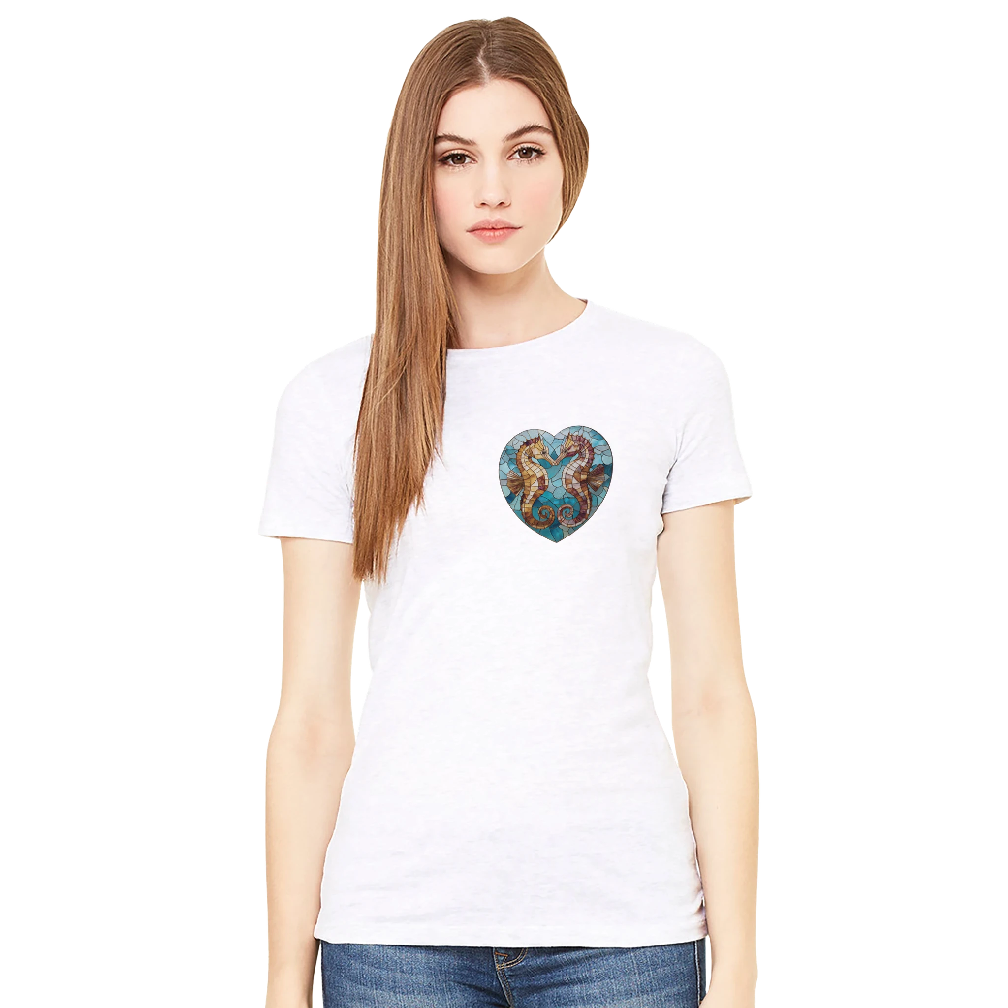 T-shirt Blanc Cœur Hippocampes