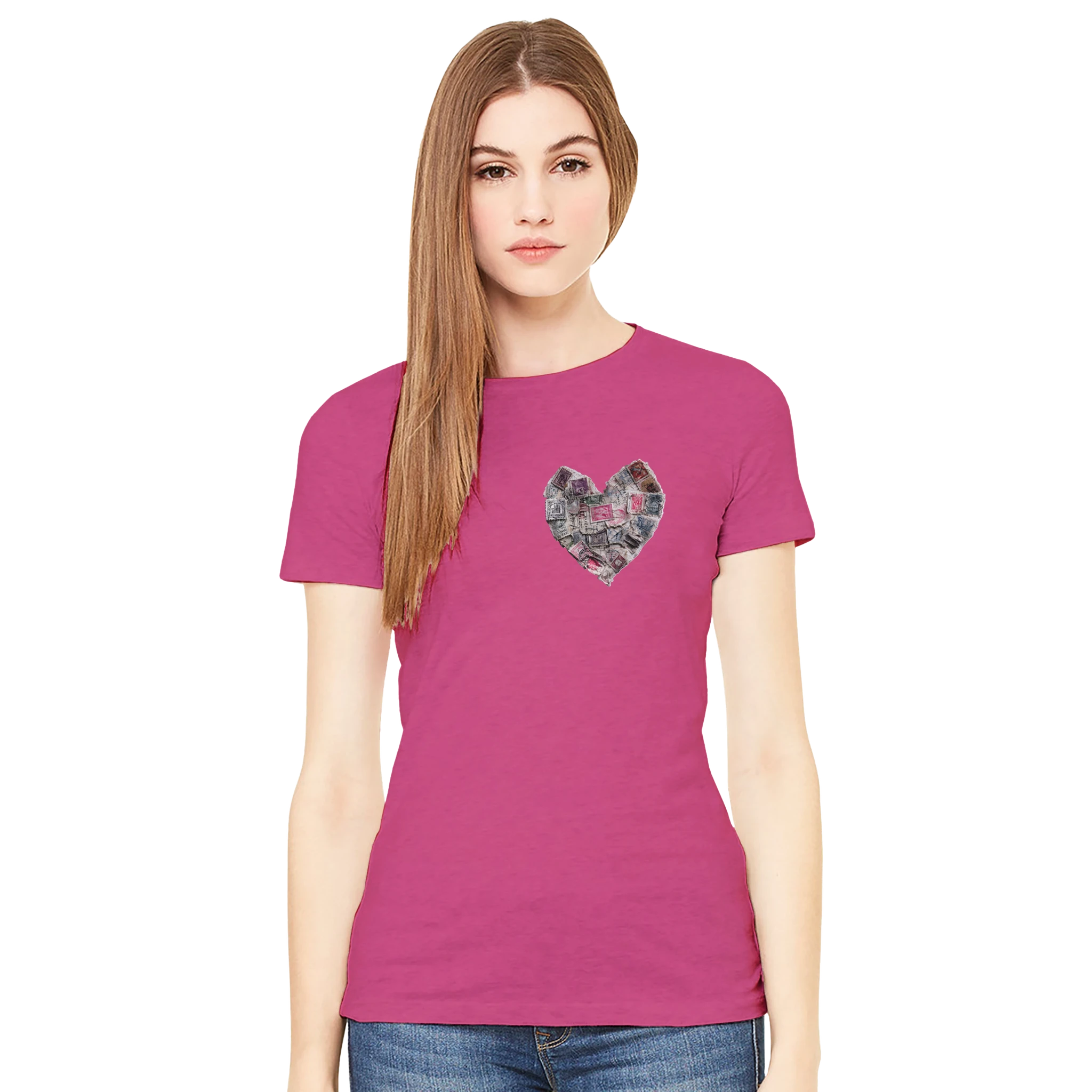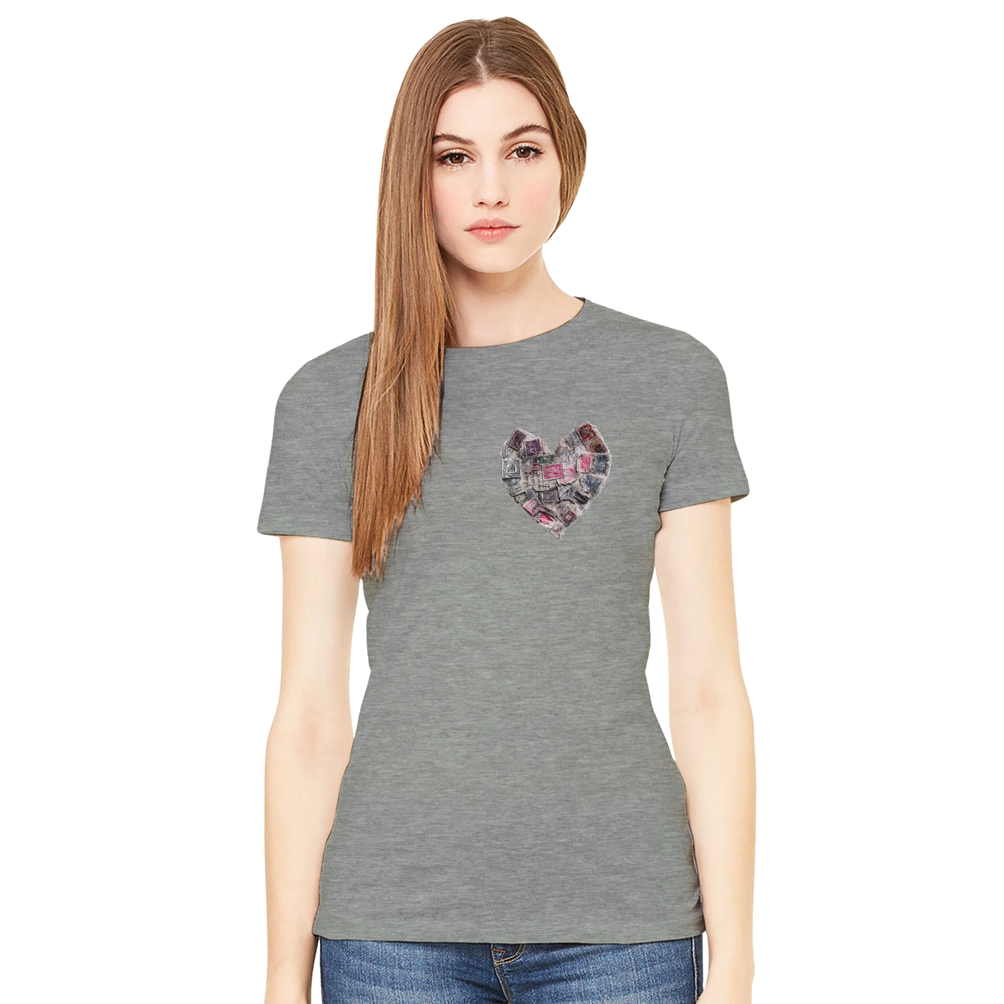 T-shirt femme «Cœur fait de timbres-poste anciens»
