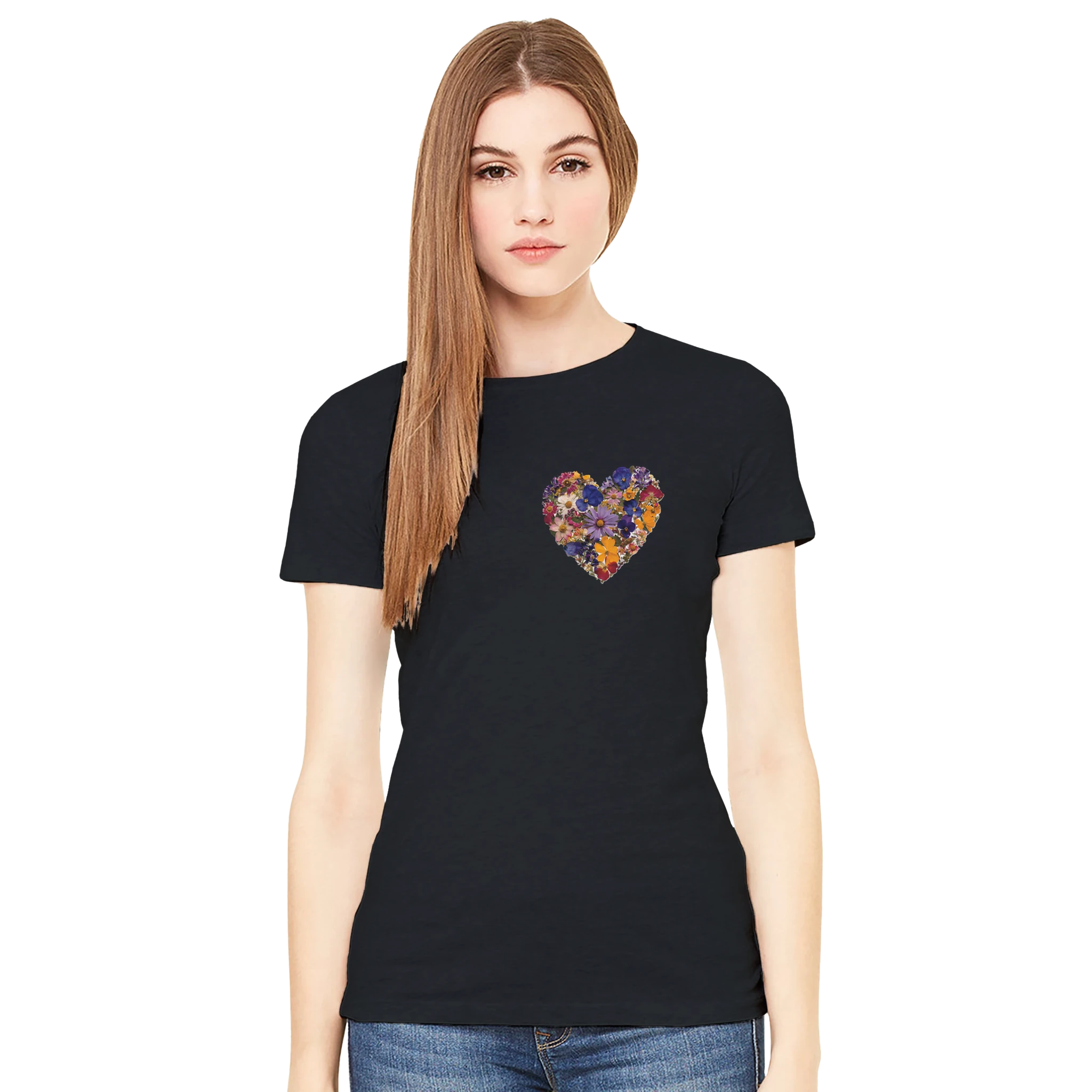 T-shirt femme «Collage de fleurs en forme de cœur»