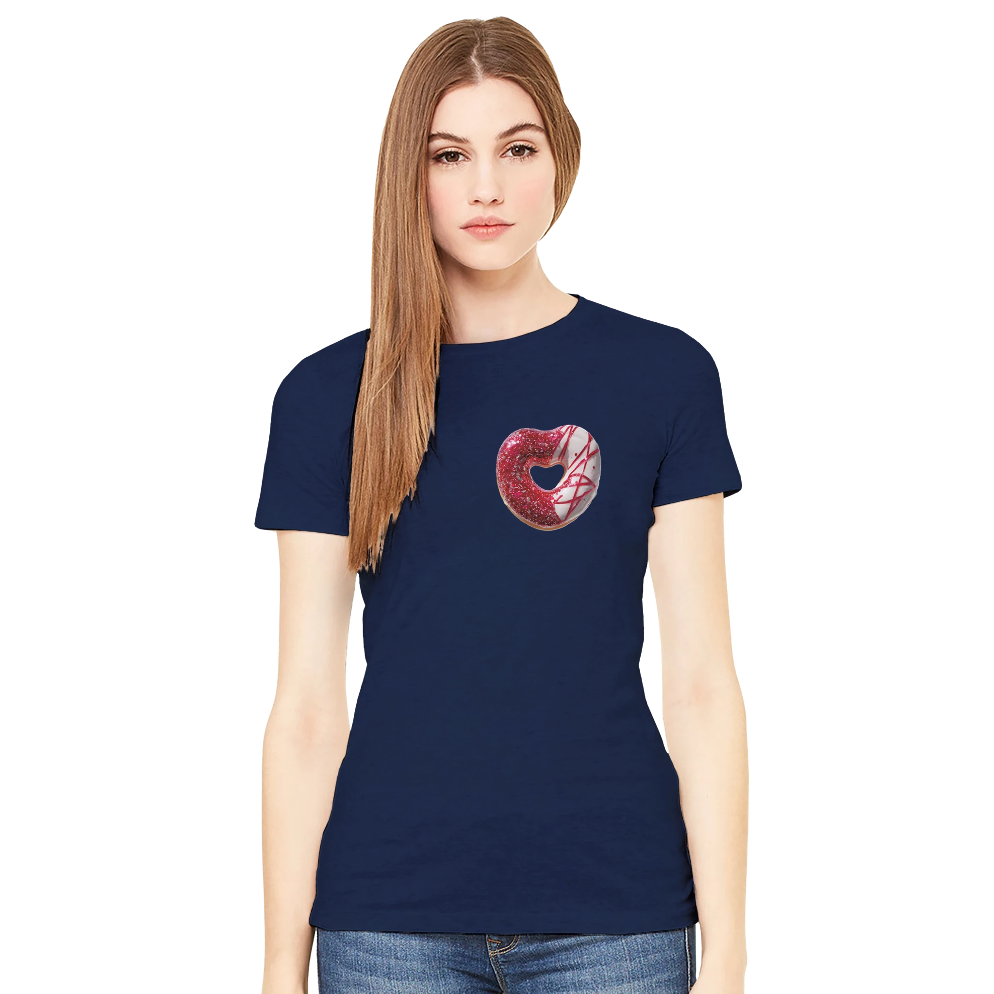 T-shirt femme «Donut en forme de cœur, glaçage rouge et paillettes»