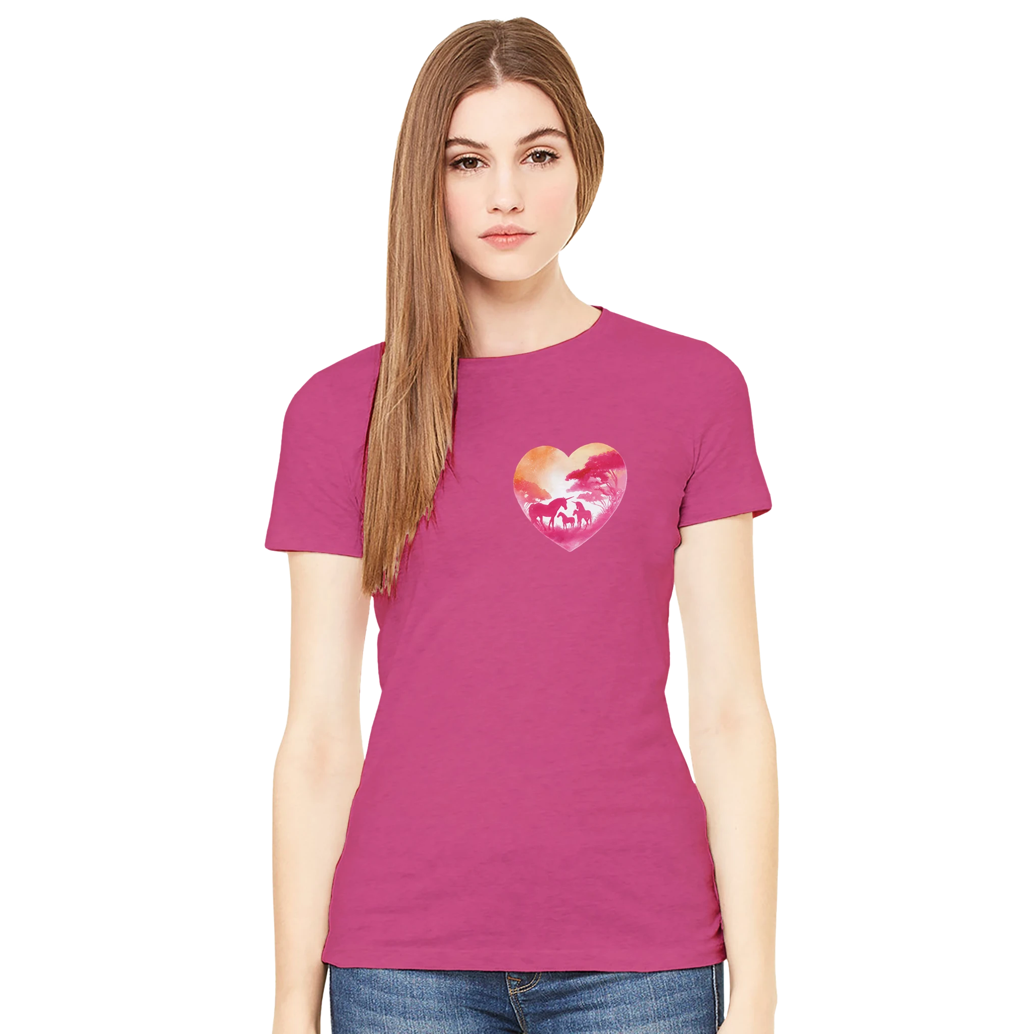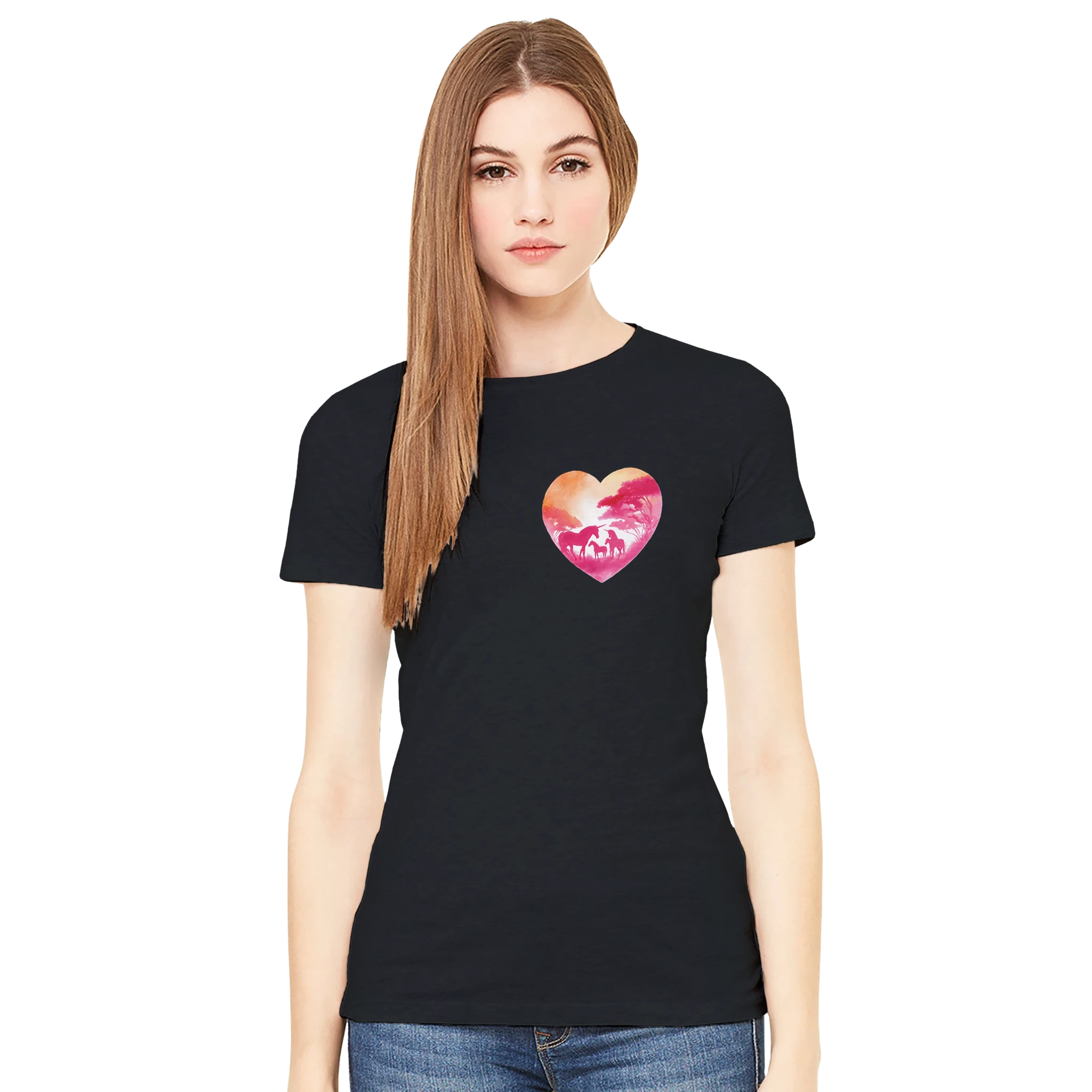 Plongez dans un univers magique avec notre t-shirt femme «Famille de licornes» ! Affirmez votre girl power avec ce cœur paradisiaque où licornes et arc-en-ciel ne font qu’un. Parfait pour illuminer vos journées et conquérir le monde, une corne à la fois ! Enfilez-le et regardez la magie opérer : un boost de confiance et de style assuré. Un must-have pour celles qui veulent briller tout en douceur. Parce qu’un peu de féérie n’a jamais fait de mal à personne ! Voilà le moment rêvé pour laisser parler votre âme de licorne. Ajoutez ce trésor à votre garde-robe maintenant !