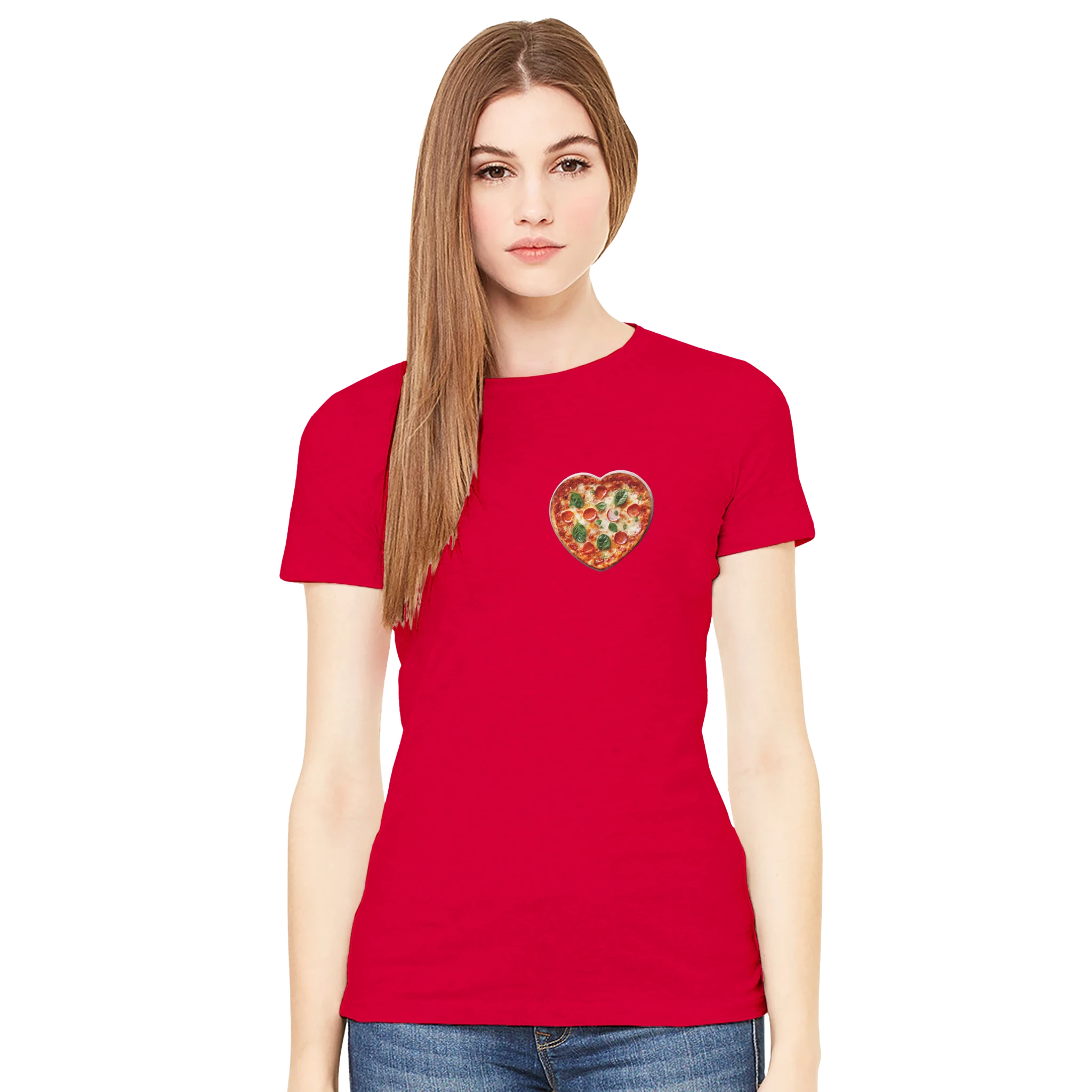 Découvrez le t-shirt femme «Pizza cœur» de Mimizou, l’allié parfait des épicuriennes au grand cœur ! Arborez fièrement ce motif qui célèbre votre amour pour la mode et... la pizza. Parce qu’au fond, qui peut vraiment résister à une part de girl power nappée de sauce tomate ? Vos journées seront désormais pleines de saveur et confinées dans un style unique qui ne laisse personne indifférent. Alors, mesdames, n’hésitez pas à adopter cette délicieuse fusion, car avec Mimizou, l’amour n’a jamais été aussi croustillant !