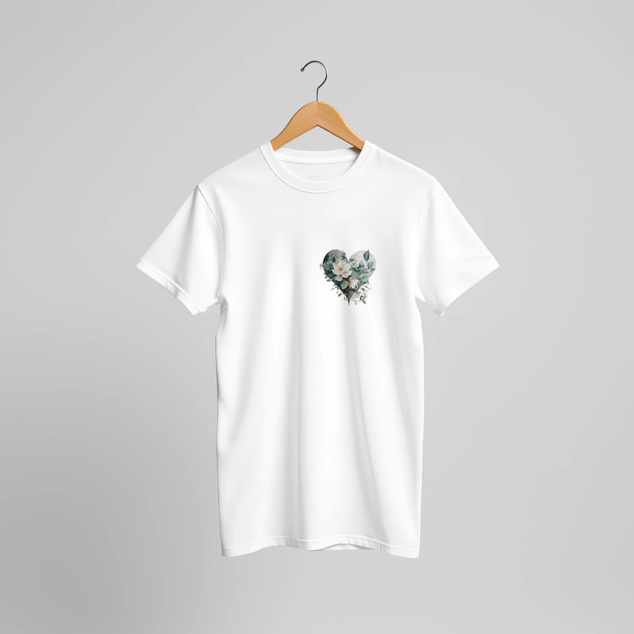 T-shirt unisexe «Cœur aquarelle avec eucalyptus et pivoines»