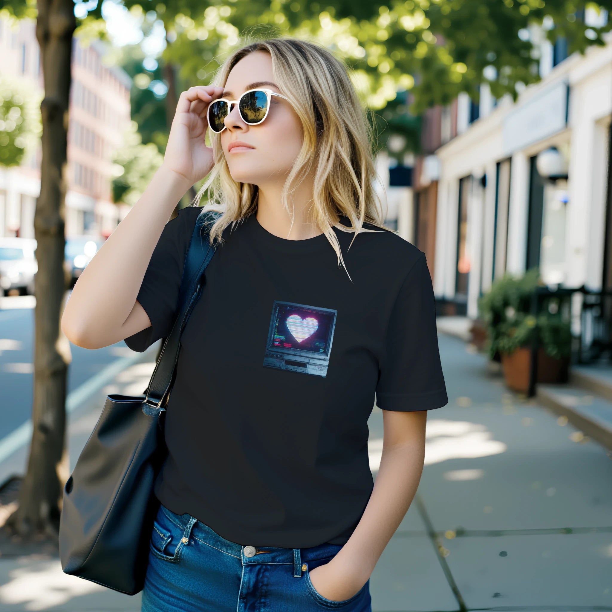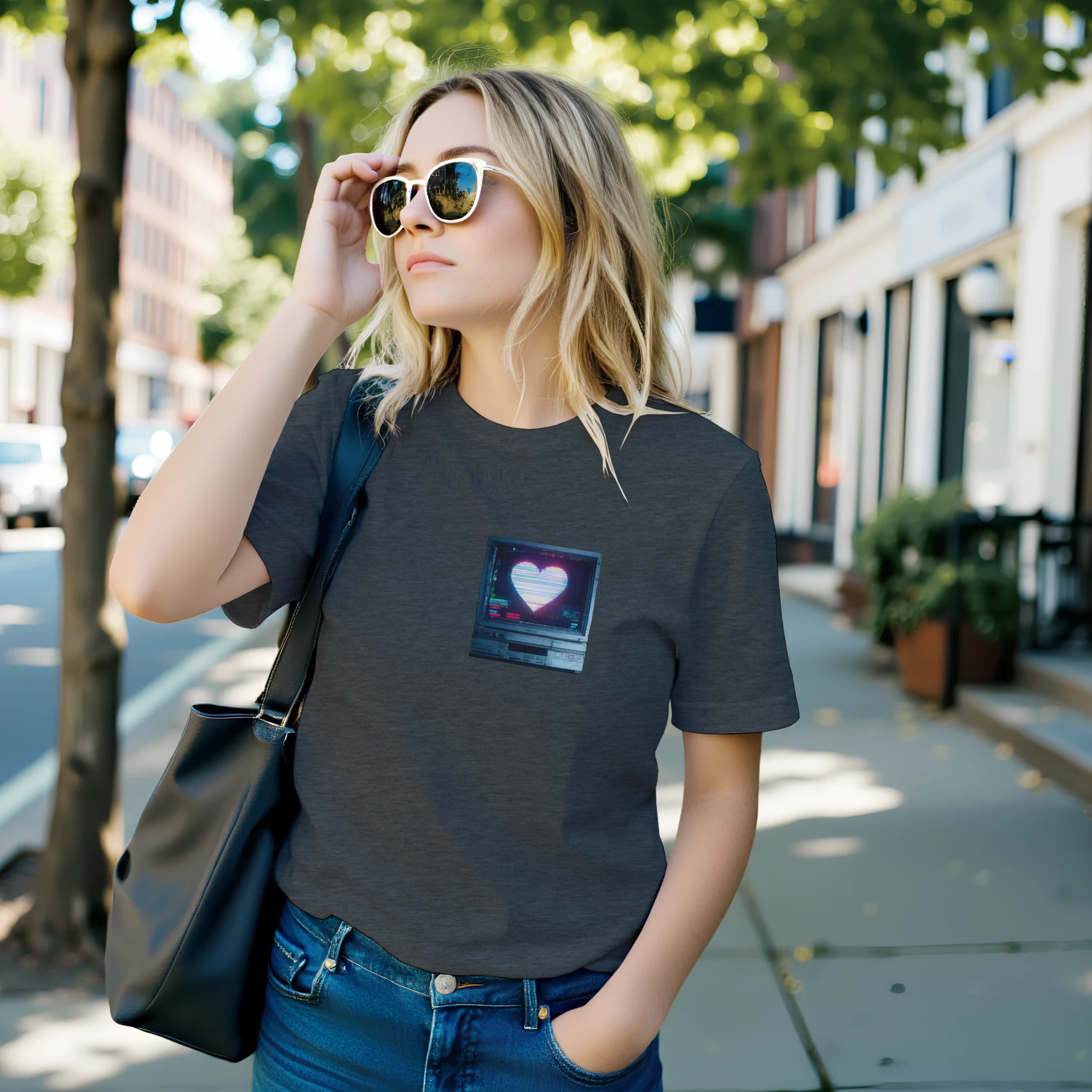 Misez tout sur le rétro-nostalgique avec notre T-shirt unisexe «Cœur dans un écran CRT» ! Ce n'est pas juste un t-shirt, c'est une déclaration d'amour qui scintille plus brillamment qu'un vieux téléviseur qui a trop regardé les Feux de l'amour. Une pièce parfaite pour ceux qui veulent montrer leur cœur pixelisé avec style et humour ! Et ne vous inquiétez pas, il n'est pas nécessaire de taper sur le côté pour voir l'image correctement. Enfilez ce t-shirt et laissez votre cœur battre au rythme des années 80… tout en restant terriblement à la mode !