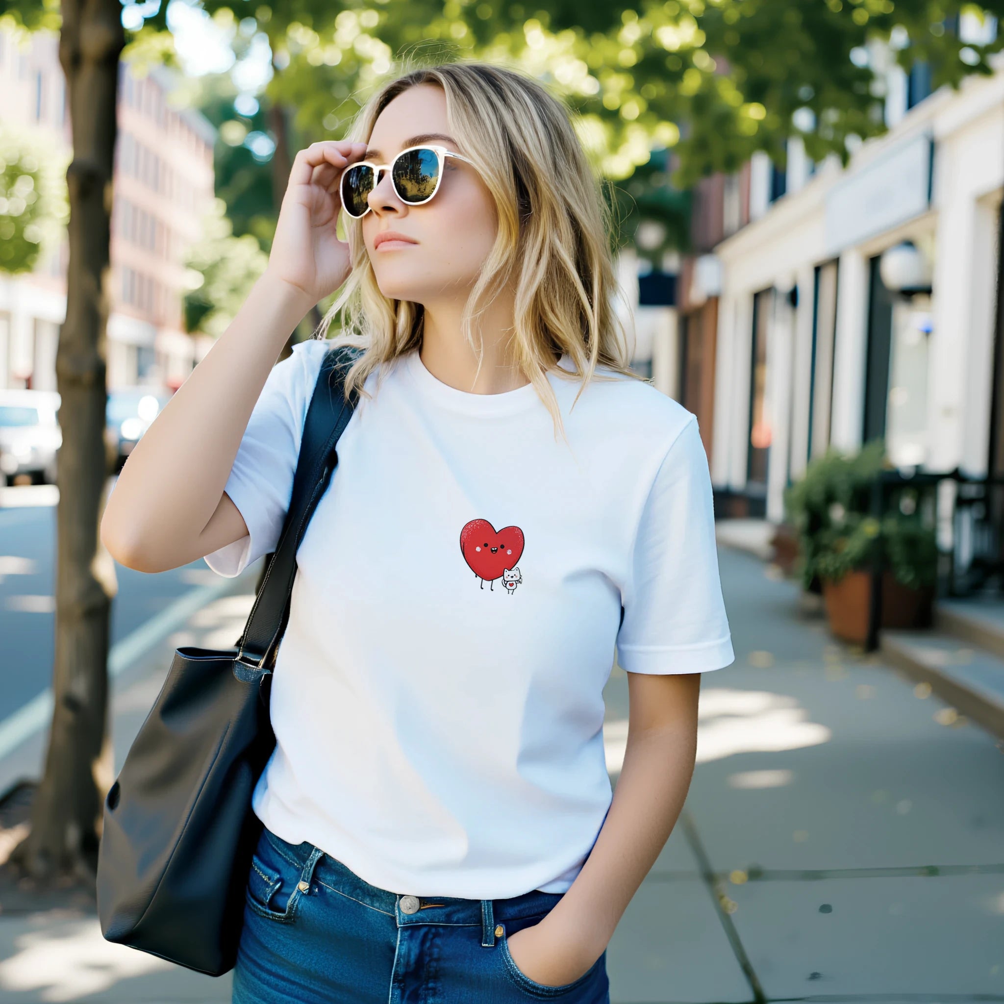 Découvrez notre T-shirt unisexe «Cœur et petit chat», une ode subtile à l'amour exubérant et aux câlins félins ! Avec ce cœur rouge joyeux et son complice à moustaches, soyez prêt à déclencher des sourires incontrôlables et des câlins improvisés. Parfait pour ceux qui aiment les chats, les cœurs, et... les chats avec des cœurs ! Portez-le pour une dose quotidienne de mignonnerie et laissez-vous charmer par son confort. Parce qu'un petit chat qui tient votre cœur, ça n'a pas de prix ! Adoptez-le et préparez-vous à fondre, littéralement et subtilement !
