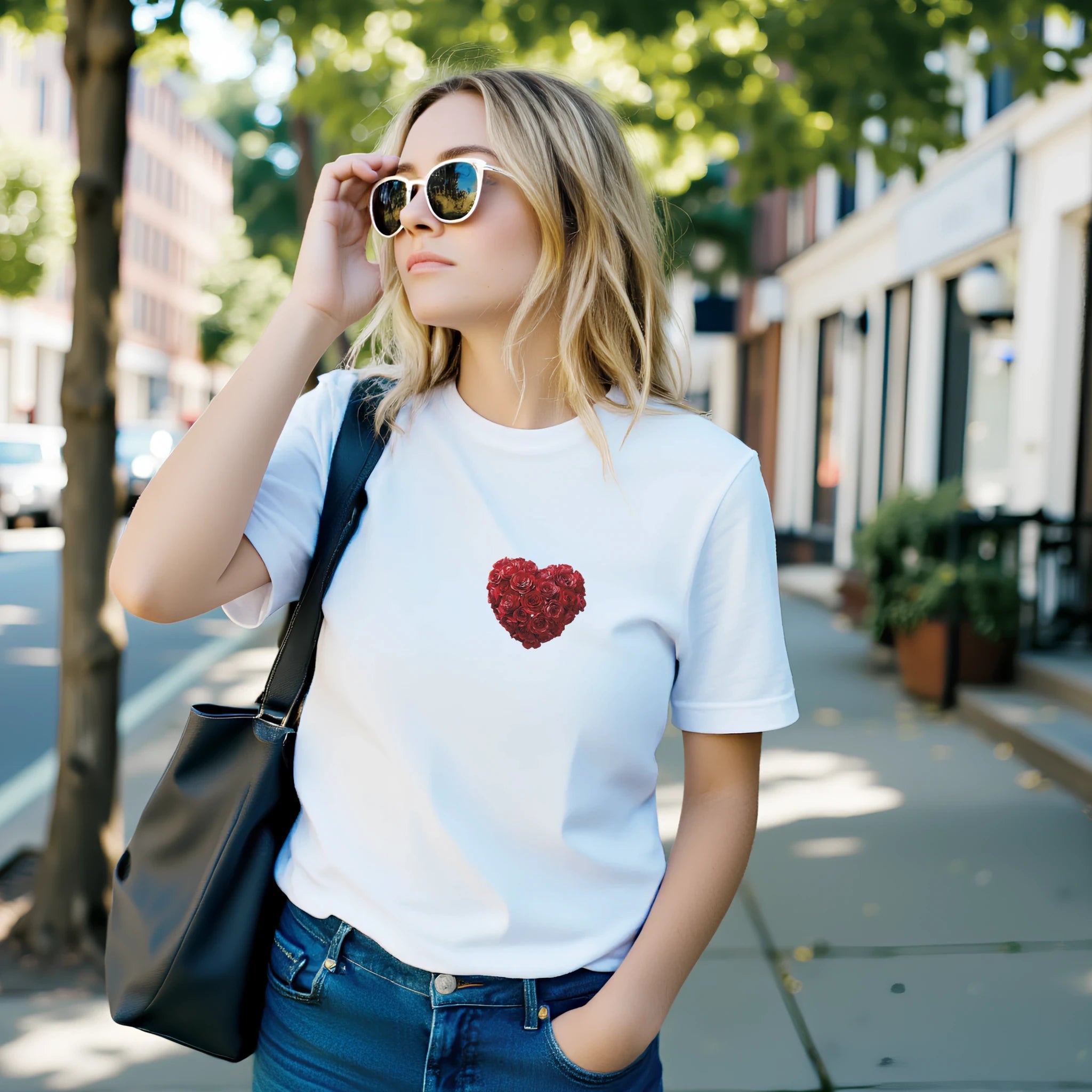 Découvrez le T-shirt unisexe «Cœur filé de roses rouges» de Mimizou, où chaque pétale éclate en une ode à l'amour et à la mode. Ce cœur floral est si captivant qu'il pourrait même faire rougir Cupidon ! Idéal pour séduire ou simplement embellir votre journée, ce t-shirt transforme n'importe quelle rencontre en une potentielle comédie romantique. En portant ce chef-d'œuvre, vous affirmez subtilement : « Oui, je suis romantique, mais je préfère l'exprimer en t-shirt. » Préparez-vous à recevoir une avalanche de compliments (et peut-être même quelques roses) !