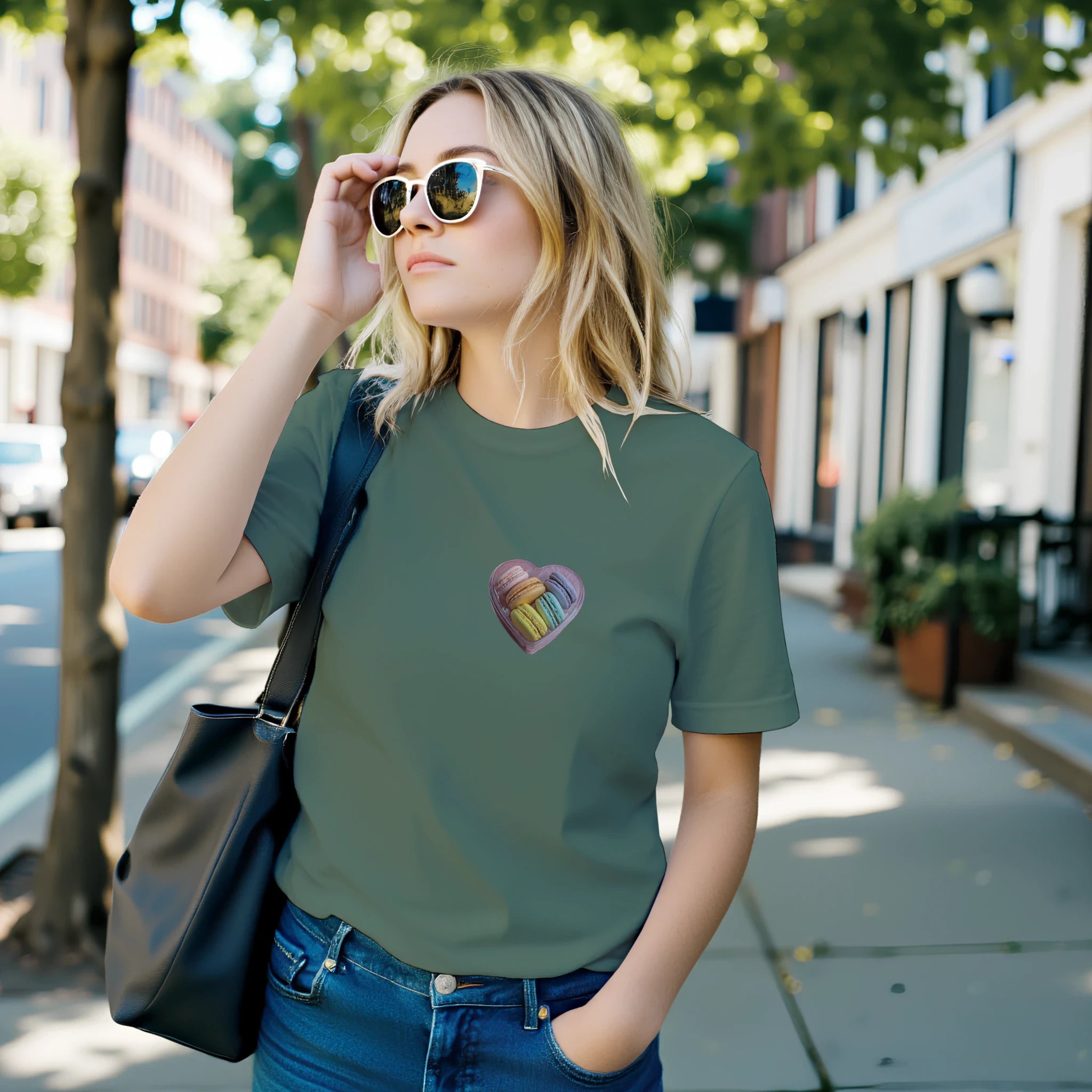 Découvrez notre t-shirt unisexe «Macarons», où douceur et style se rencontrent pour une aventure gourmande sur fond de coton moelleux. Parfait pour ceux qui aiment ajouter une touche sucrée à leur garde-robe sans prendre une seule calorie ! Imaginez-vous déambulant en ville, des macarons pastel en guise de blasons. Un vent de fraîcheur et de gaieté souffle avec chaque cœur ! Faites de chaque jour une délicieuse escapade et transformez votre look avec une saveur irrésistible. Un petit haut qui a tout pour plaire — de la ganache au glamour, tout droit sorti de votre collection rêvée chez Mimizou !