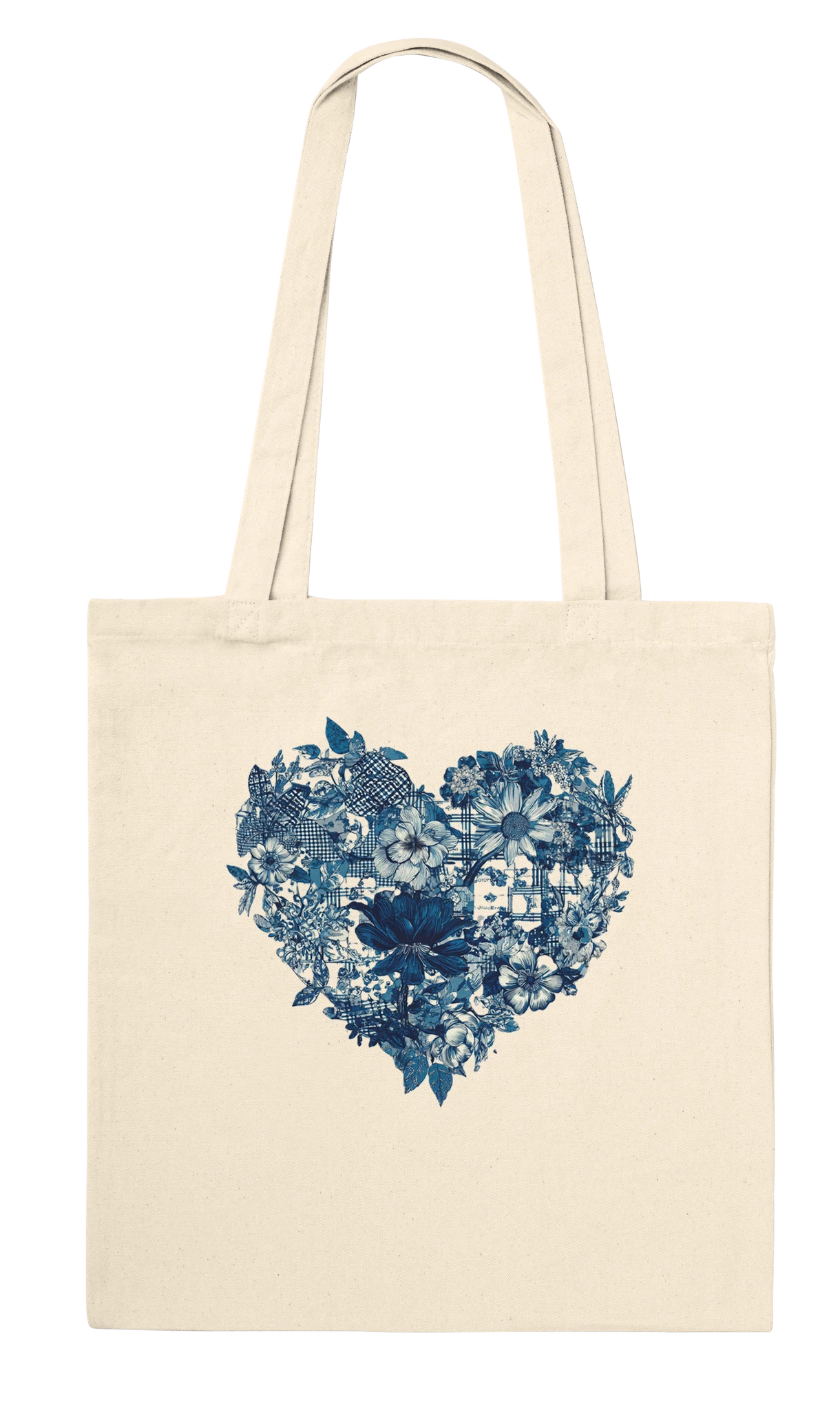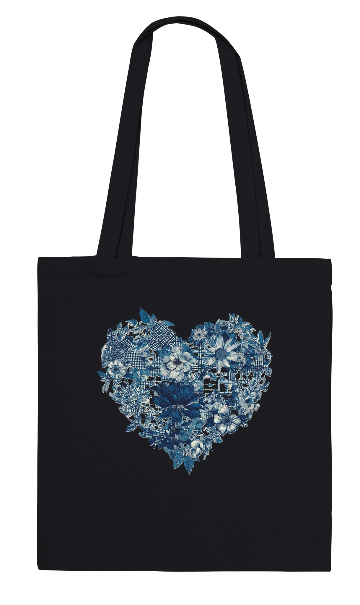 Tote bag cœur fleurs bleu